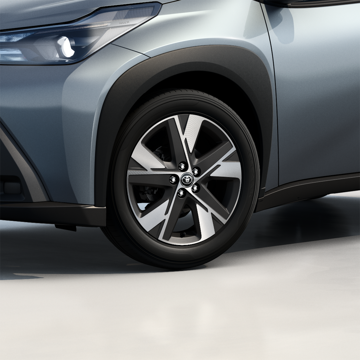 Un acabado gris mecanizado que aporta un toque moderno y elegante al Aygo X Cross.