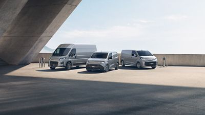 - Proace Electric: Un furgón potente que se adapta a las exigencias de tu negocio y con una autonomía de hasta 330 km.